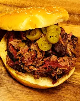 Jumbo Pulled Pork Sandwich – served with coleslawJuicy pulled pork piled high with BBQ sauce and bread and butter pickles on a bun.$15.00Jumbo Smoked Brisket Sandwich – served with coleslaw$17.00