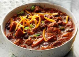 Brisket Chili– 16 oz container of hearty chili with tender pieces of smoked brisket served with crackers and shredded cheddar. Available Nov-Feb. $15.00