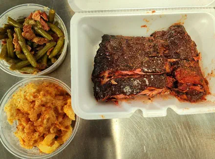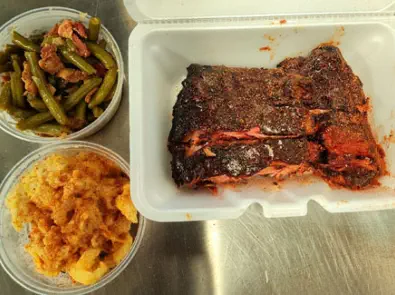 Side of BBQ Baked Beans - $3.00Country style baked beans with onion, bell pepper, and ground beef (not vegetarian)Side of Chips - $2.00Boulder Canyon sea salt chips12 oz can of Soda - $2.00